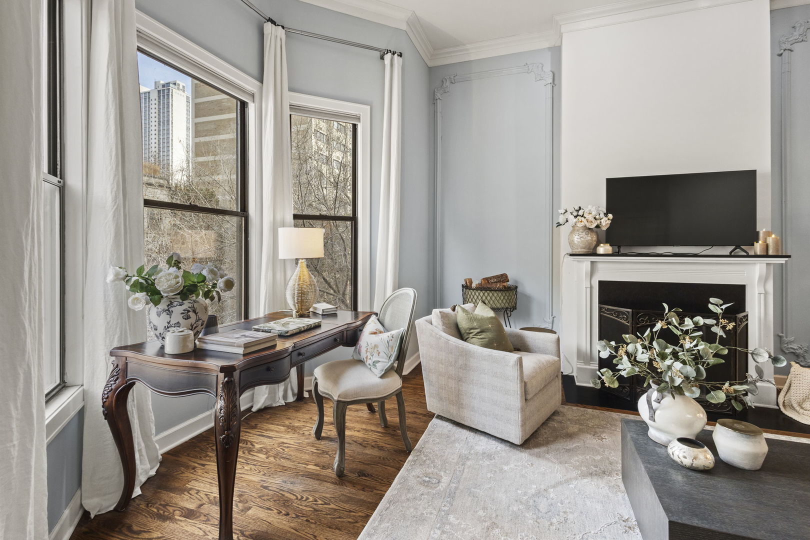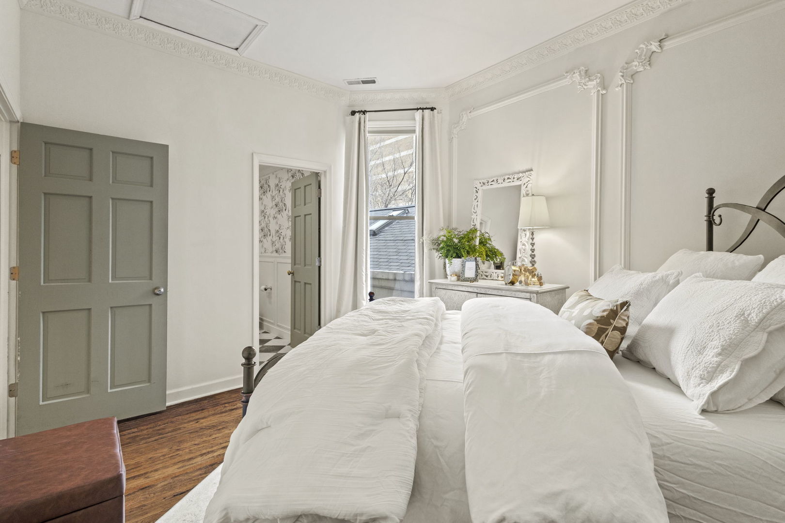 French-inspired quiet penthouse flat in the heart of the Gold Coast. Lovingly rehabbed 2023-24, it's a spectacular enchanted and magical residence! Some highlights: vintage skylight offers amazing natural light, huge living/dining/entertaining space with woodburning fireplace, 12' ceilings, custom moldings, and refinished hardwood floors. New luxury lighting. All-new kitchen (cabinets, counters, appliances, lighting...) is so gorgeous! NEW Butlers' pantry/office offers wonderful storage and use of the gallery. Updated bathrooms. Back deck/balcony with water service. Many parking options within a block of the property - one block to Lake Michigan underpass, and 5 min to Oak St/Mich Ave, Old Town, Lincoln Park... the perfect location!