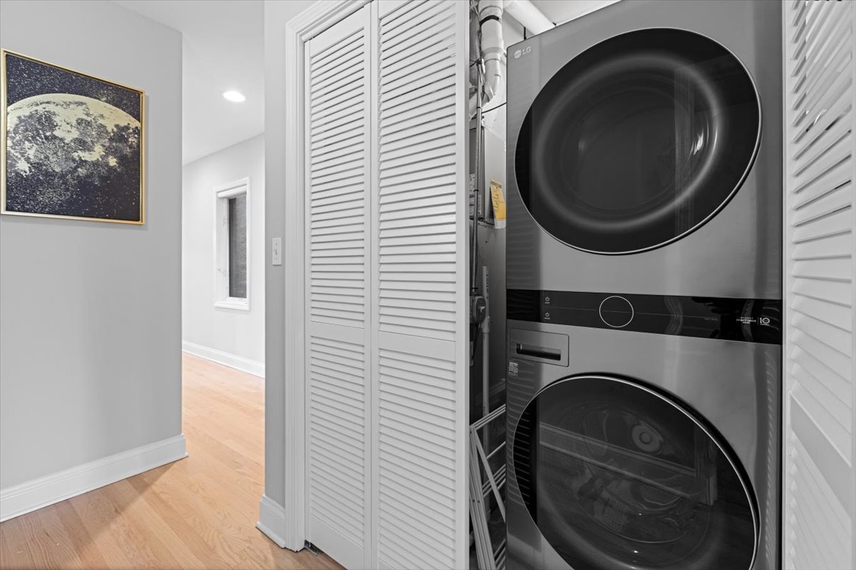 Perfectly situated in the heart of Roscoe Village, this updated 2 bedroom, 2 bath home combines thoughtful upgrades, great natural light, and unbeatable walkability. The open living and dining area features hardwood floors, a gas fireplace with tile surround, custom lighting, and a Juliet balcony overlooking a quiet tree-lined street. A cozy dining nook off the living room is ideal for a banquette or small table, creating the perfect space for everyday meals or entertaining. The kitchen is both functional and stylish with stainless steel appliances, cherry cabinetry offering generous storage, granite countertops, a white glass backsplash, and an island with seating. The spacious primary suite includes organized closets and an upgraded ensuite bath with newer vanity and stone finishes. The second bedroom works well for guests or a home office, and the updated full guest bath completes the layout. Additional features include in-unit laundry, central air, and two-car tandem parking. Step out to the large west facing rear deck for easy outdoor lounging, grilling, and dining alfresco. Enjoy everything that makes Roscoe Village one of Chicago's most desirable neighborhoods. Walk to popular spots like Volo Wine Bar, Piazza Bella, Commonwealth Tavern, The Radler, Kitch'n, Starbucks, The Bake House, The Region, and Roscoe Village Pub, Frasca, Bitter Pops, along with local boutiques and shopping. Easy access to the CTA Brown Line, top-rated Audubon Elementary, and nearby parks, restaurants, and nightlife.