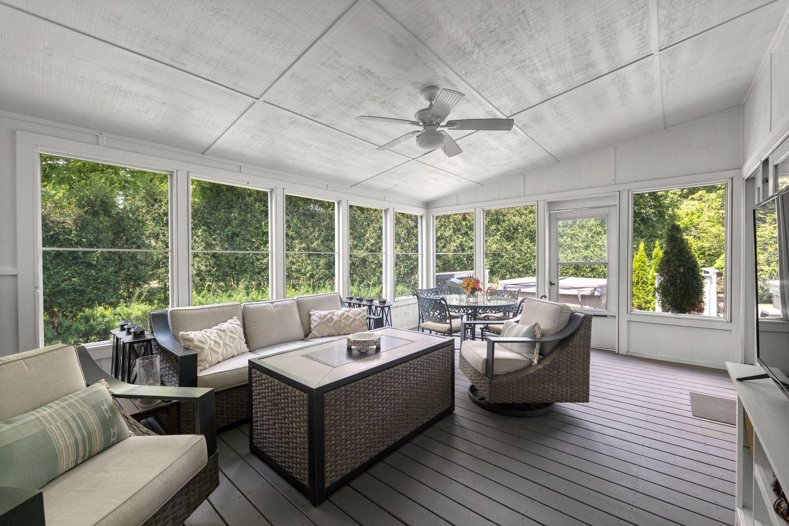 Experience the pinnacle of contemporary ranch-style living in this stunning Lake Forest home, beautifully situated on a lush two-acre oasis. Spanning over 4,000+ square feet, this residence has undergone remodeling in the past five years, creating an ideal environment for comfortable, single-level living. The master suite offers a generous spa-like bathroom and direct access to a cozy screened porch, conveniently located next to the outdoor hot tub. Perfectly designed for entertaining, the home features a grand two-story living room, a spacious chef's kitchen with an adjoining dining area, and a generous family room with a substantial coffee bar. Each main living area effortlessly transitions to a large entertainer's dream deck that overlooks the expansive backyard. Enjoy amenities like a fire pit, hot tub, built-in grill, and a putting green with designed chipping pads equipped with ball washers. Considering a pool? There's ample space, along with a large first-floor bathroom and entrance perfectly suited for a pool area. The flexible floor plan includes a versatile first-floor bedroom currently used as a gym. Upstairs, three additional bedrooms with modernized bathrooms provide picturesque views of the serene and private grounds. As you approach via the winding driveway, you'll be enchanted by the property's seclusion and expansive open spaces. Enjoy the oversized three car garage at the top of the driveway. Move in with confidence, knowing this home is impeccably maintained and updated. Don't miss the opportunity to make this Lake Forest gem your own!